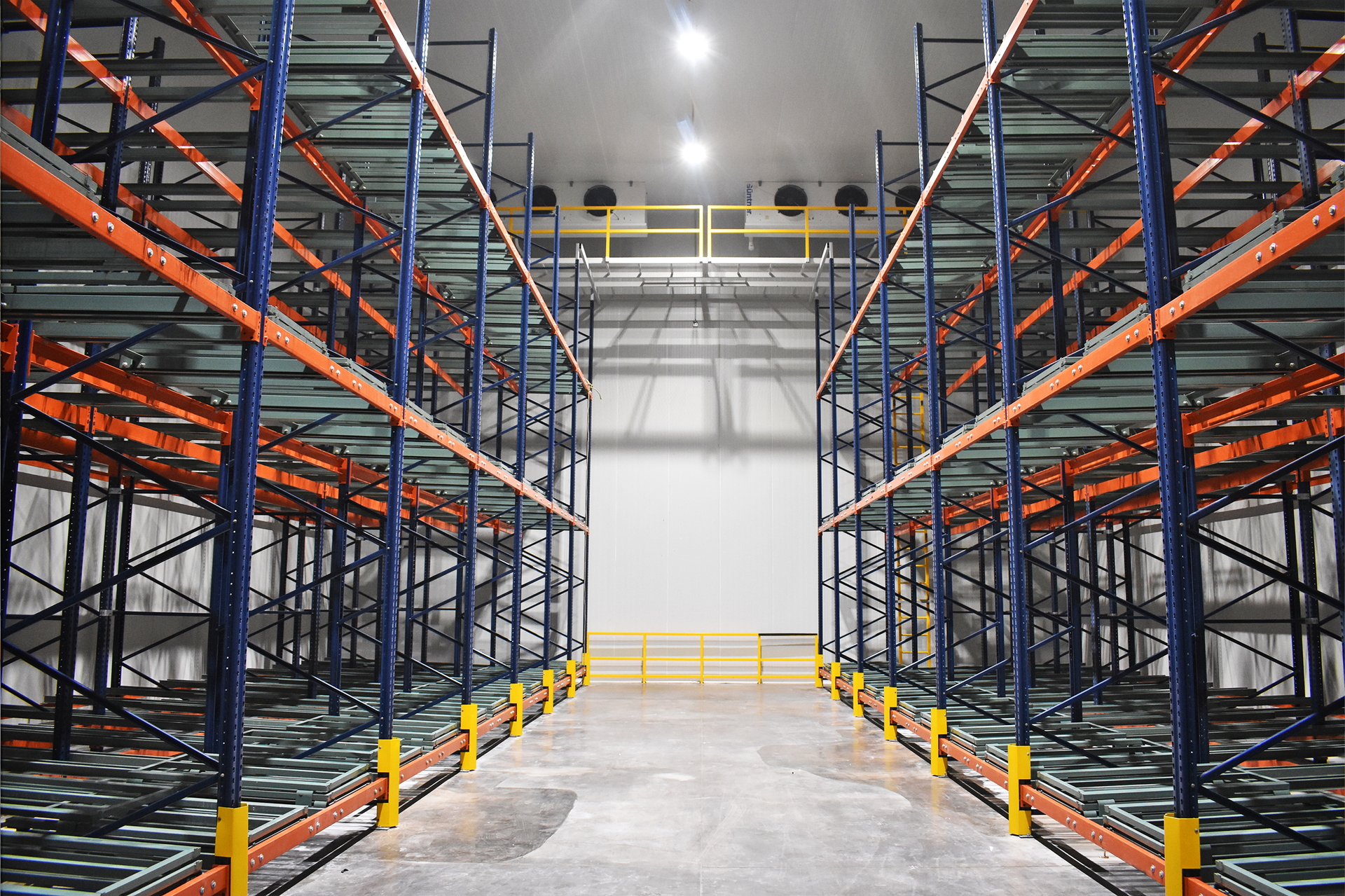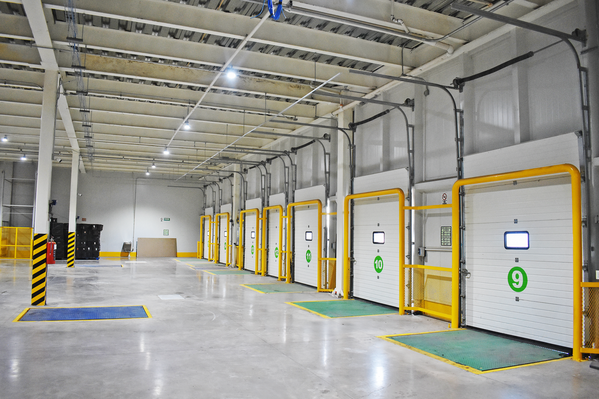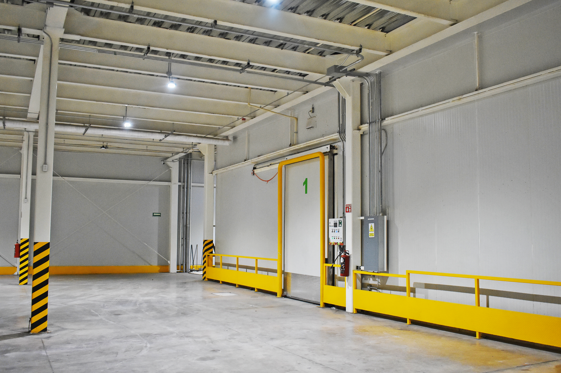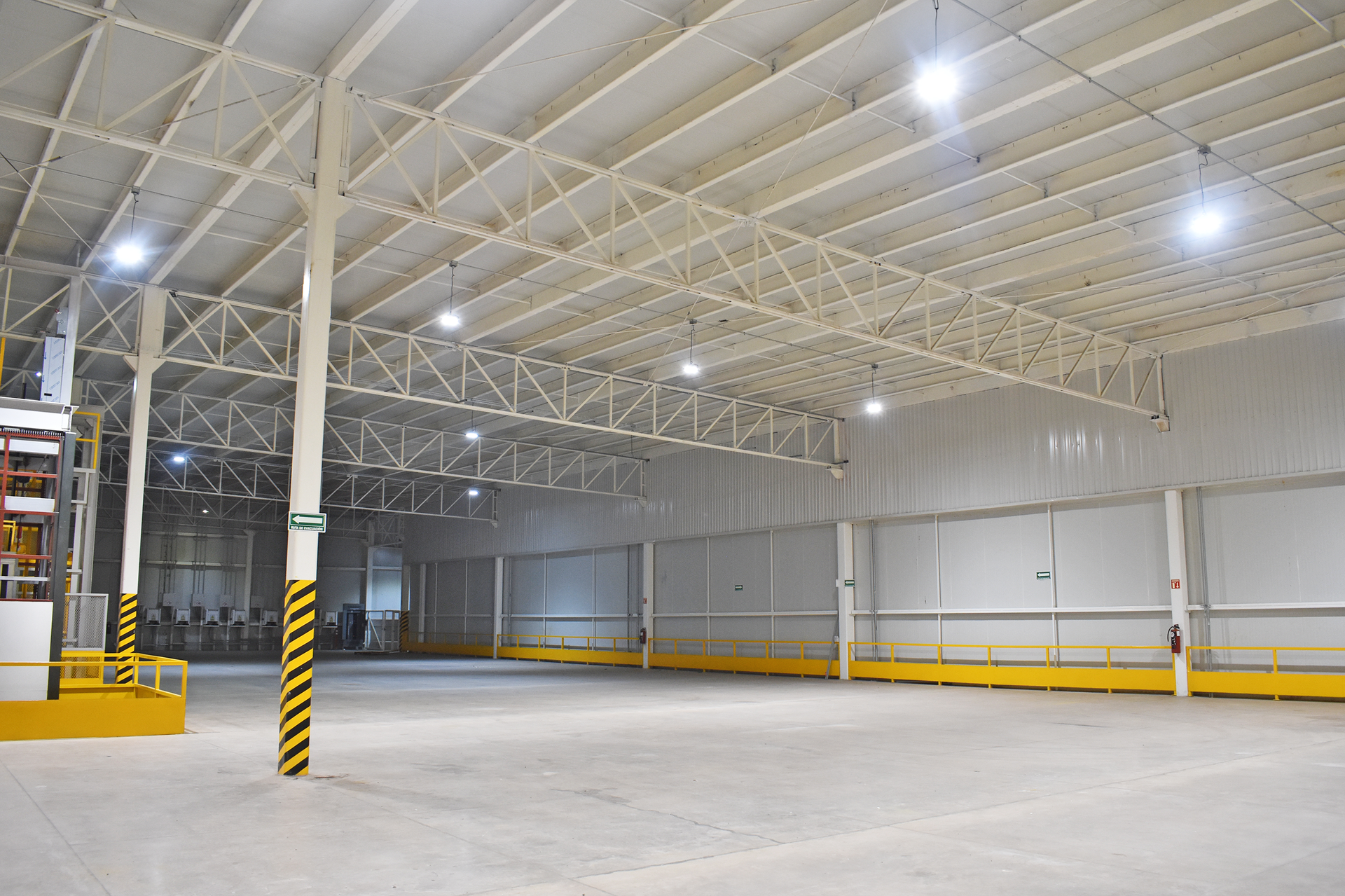 En nuestro centro de distribución contamos con un área de almacenaje de 4500 m² distribuidos en 2 cuartos de conservación (36 grados F°) y 1 cuarto de congelación (28 grados C°); combinados cuentan con una capacidad para 864 pallets y 36 tráilers.